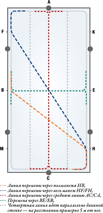 Все манежные фигуры показаны на приведенных ниже иллюстрациях.