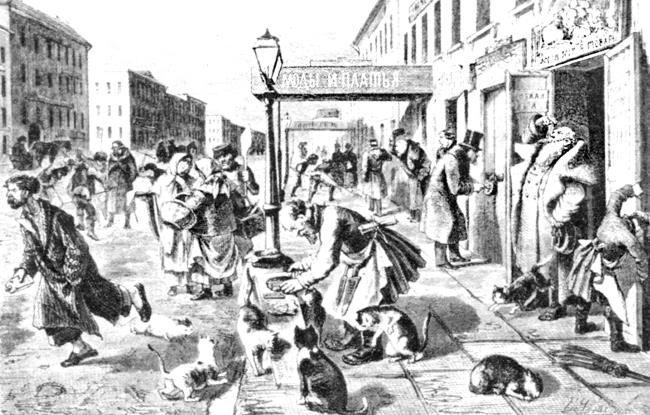 Петербург в этом отношении представляет любопытное зрелище. Стоя на окраине государства, среди финских хладных скал и тощих болот, он вызывает постоянный прилив скота из южнорусских степей. При первом взгляде на схематические таблицы г. Блиоха, изображающие собою торговое движение скота и мяса в России, вы замечаете два центра Москву и Петербург. Многочисленные пути, по которым гонят скот, опутывают точно сетью южнорусские степи. По мере приближения к Москве эти пути мало-помалу соединяются в общий широкий поток, который от Москвы поворачивает на Петербург.
