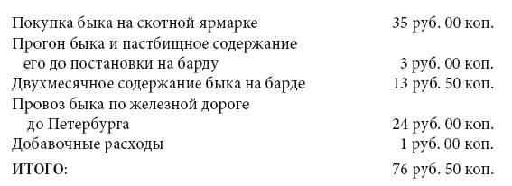 Общая стоимость откормленного бардою быка и поставленного на площадку в Петербург будет следующая: