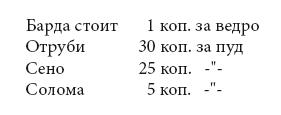 Кроме стоимости быка, на скотных ярмарках в Малороссии надо определить, во что обходится прасолам прокорм быка бардою и транспортировка его в Петербург.