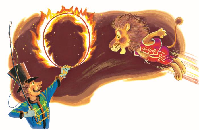 И вот оркестр заиграл туш. Публика мгновенно стихла. С лязгом открылась железная дверь, и на арену выскочил лев! Он яростно бил хвостом, взрывал когтями песок и бросался на решётку с такой силой, что, казалось, она сейчас рухнет.