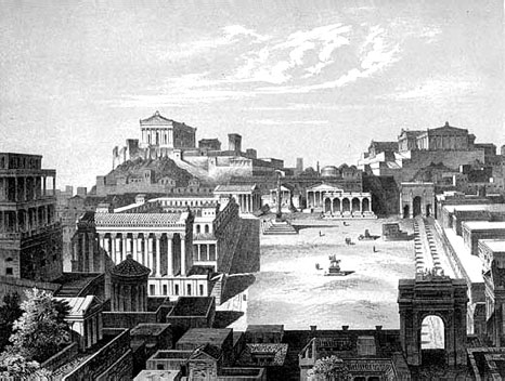 Внешне столица находилась почти в зените своего архитектурного совершенства. Во времена Цицерона даже Александрия, Антиохия и несколько менее крупных городов не могли соперничать с Римом по красоте и элегантности его площадей, улиц и великолепию строений. Но с наступлением эпохи Империи начался нескончаемый процесс сноса, перестройки и расширения городской застройки. «Я принял Рим, построенный из кирпича; оставляю же его выстроенным в мраморе», гордо произнес император Август незадолго до своей смерти (14 г.). Однако даже после него продолжался процесс пусть постепенной, но все же перестройки, и так дело шло до большого пожара при императоре Нероне в 64 г. Разрушения в результате пожара были ужасными, но это бедствие повлекло за собой по крайней мере перестройку почти половины города, как правило выполненную на более высоком художественном и эстетическом уровне. С тех пор каждый вступавший на престол император старался оставить после себя тот или иной значительный архитектурный мемориал. Веспасиан и Тит построили амфитеатр Флавиев (Колизей), Траян величественный форум, а Адриан в это время завершал изумительный «храм Венеры и Ромы[4]».