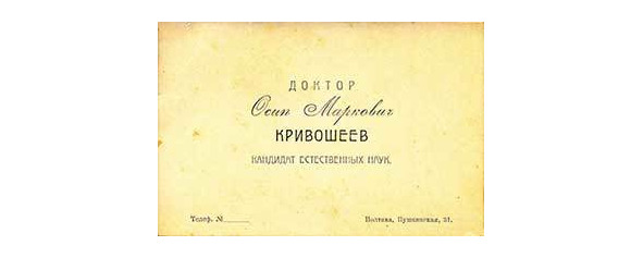 Мой отец, Осип Маркович Кривошеев, родился в 1870 году в Минске. C молодых лет его влекла наука. В 24 года он успешно завершил обучение на физико-математическом факультете Императорского Санкт-Петербургского университета, а еще через три на медицинском факультете Императорского Московского университета.