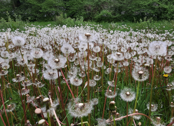 Одуванчики = как настоящие сорняки = захватили всё пространство, куда только попали их семена