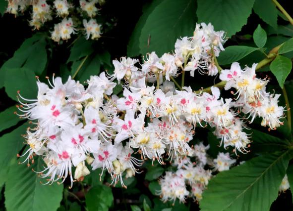 Каштаны пока ещё в цвету. И = как и сирень = уже начали отцветать Для фотографии приходится выискивать ракурс, чтобы «вялость» не влезла в кадр