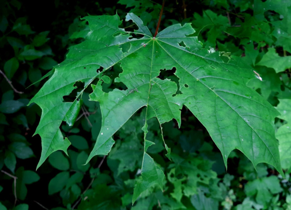 А вот зелень по её берегам уже очень интенсивно кто-то жуёт и проедает насквозь Деревья и кусты стоят «кружевные»