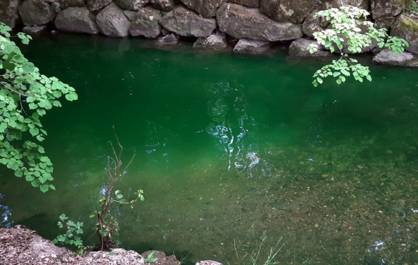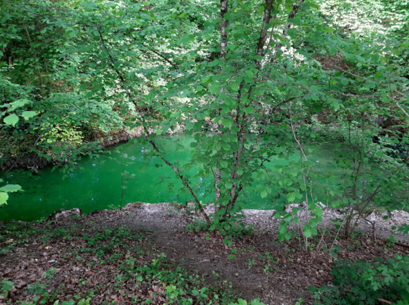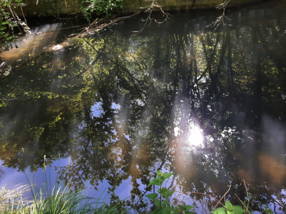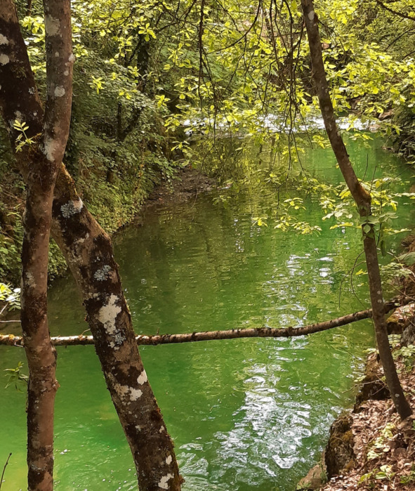 пысы от 30/10/22: оказывается, столь кратковременное позеленение речушки Нант дАвриль = явление не уникальное, а повторяющееся. Уже в конце сентября 22 года мы с сОбаком наблюдали его на том же месте в тот же час с тем же кратковременным эффектом