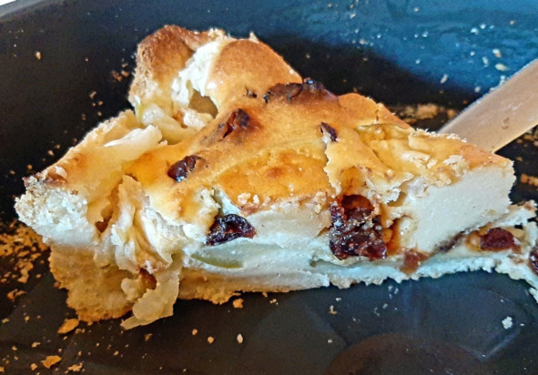 г) россыпью выложить яблоки (крупные куски использую для поддержки-подпорки изнутри стенок пирога (чтобы не «заваливались» к центру)