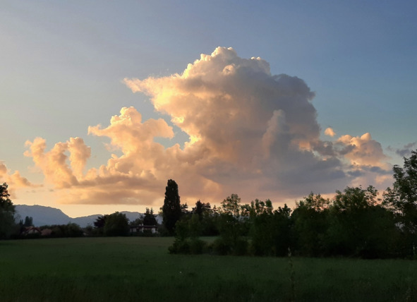 Но к вечерней прогулке с сОбаком уже в наших «краях» = небо вернуло себе чистоту, а тучи превратились в не-грозовые облака