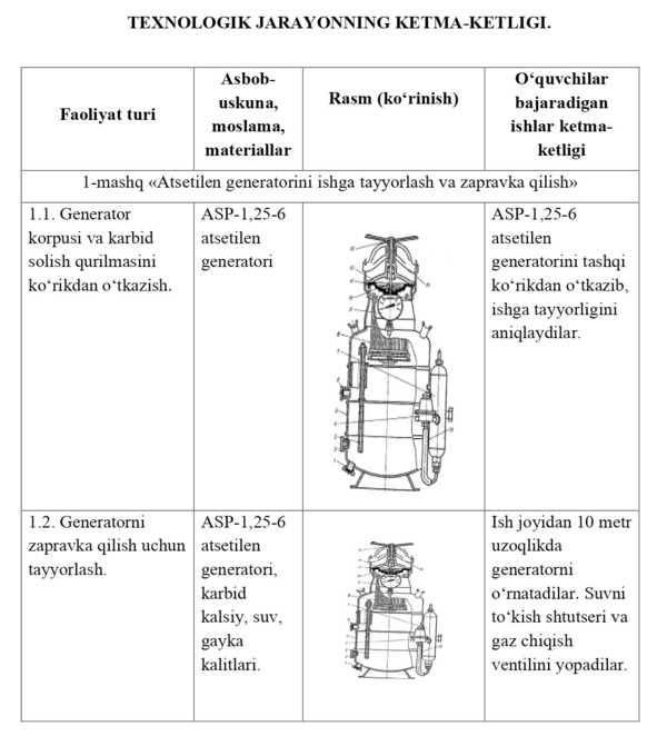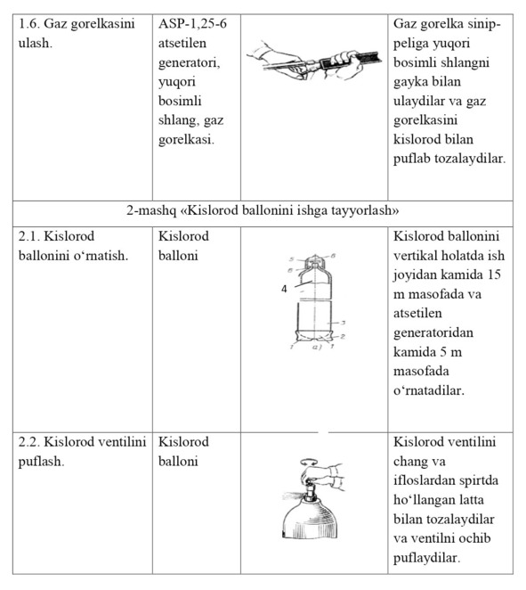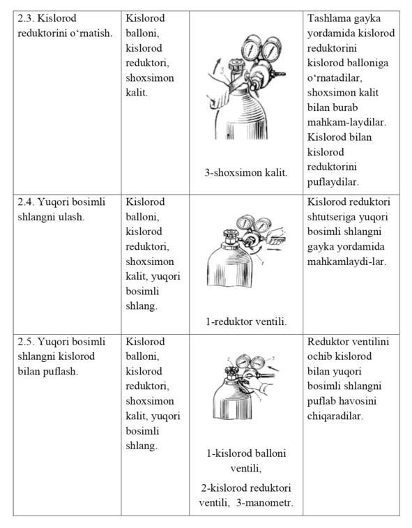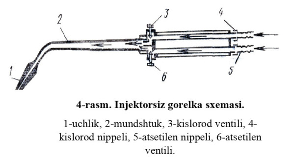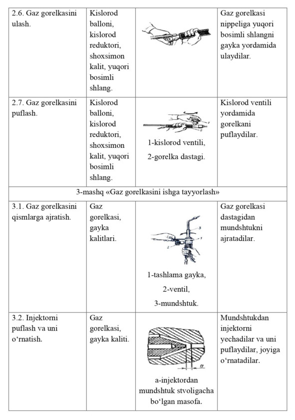 d) gaz gorelkasi katta bosimli shlanglar bilan;