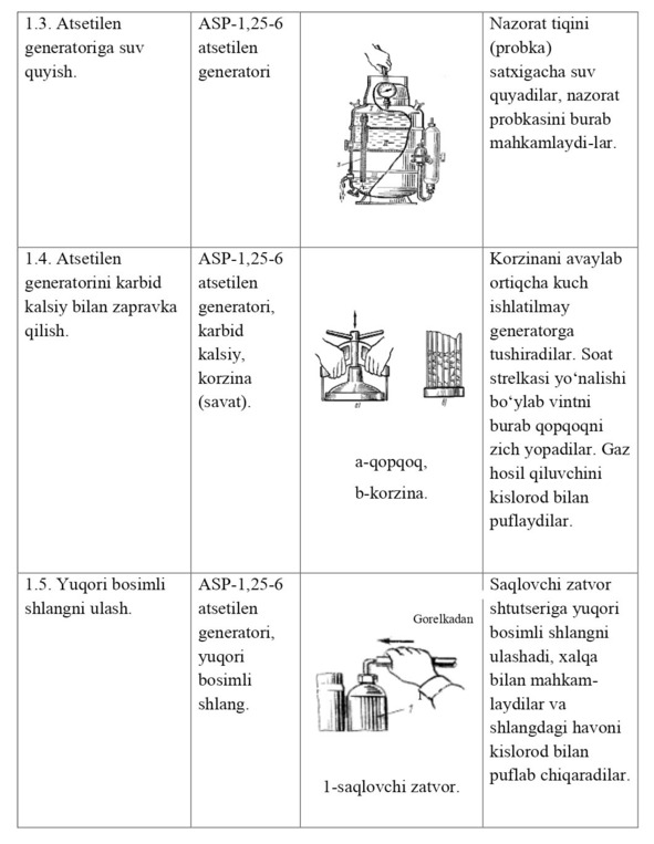 e) 3,5 kg dan karbid kalsiy har bir atsetilen generatoriga;