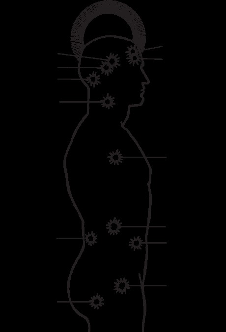 Вековые секреты исцеления говорят, что у каждого из нас есть 12 сил сознания и расположены они в нашем теле в следующих жизненно важных нервных центрах и железах. Как показано на рис. 1.