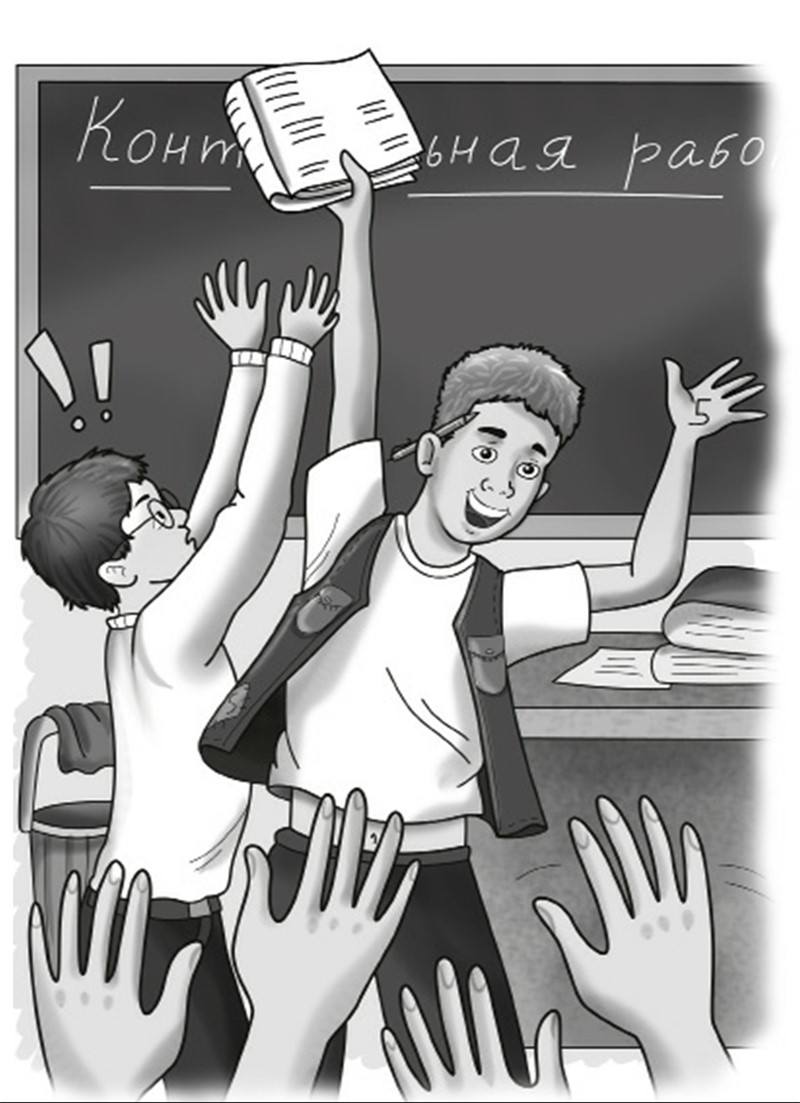 Ну и тут начались торги кто больше навешает тумаков, тот и получит контрольную. Конечно, сам Костя был не в восторге от затеянного одноклассниками и решил отобрать тетрадь, пока было не поздно.