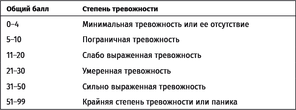 Если хотите, можете заполнять опросник тревожности чаще, чем раз в неделю. Если вы проходили тест, когда ощущали особенную тревожность и неуверенность, запишите это внизу бланка с ответами. Например, если вы набрали 67 баллов и при этом у вас была паническая атака, это будет свидетельствовать о крайней степени тревожности. Рядом с вашим баллом вы можете сделать приписку: «Когда мне было хуже всего». Точно так же вы можете захотеть пройти тест, когда будете чувствовать себя лучше всего. Сравнив «худший» балл с «лучшим», вы увидите диапазон своих состояний за последнее время.