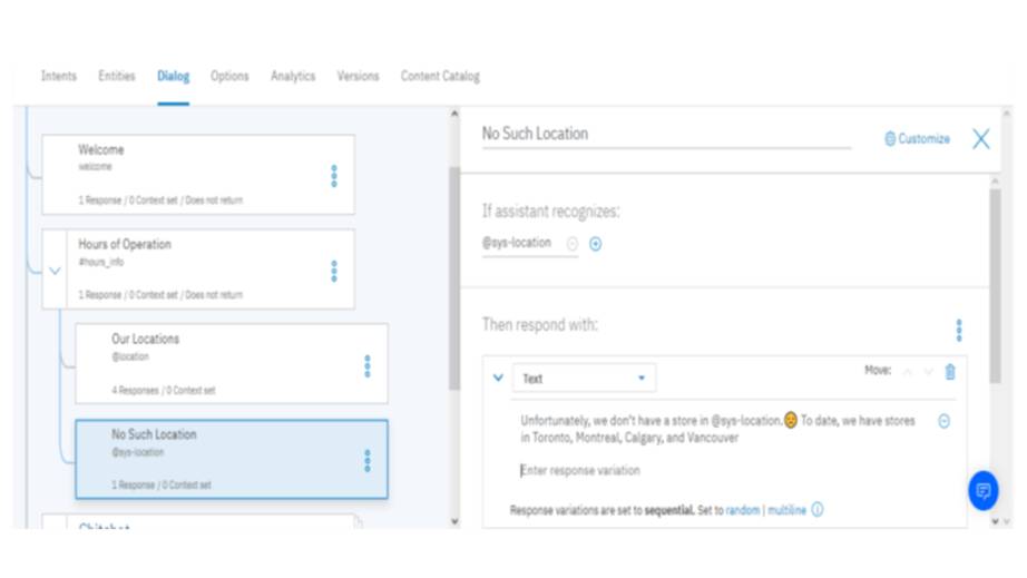 Теперь, ранее мы определили намерение #hours_info для людей, спрашивающих о часах работы и адресах нашей сети магазинов, и даже создали сущность @location, чтобы иметь возможность предоставлять ответы, специфичные для конкретного места.