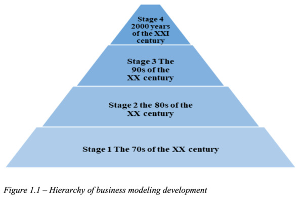 In the business modeling development history, there are four stages based on a conceptual approach to the organization management (Figure 1.1).