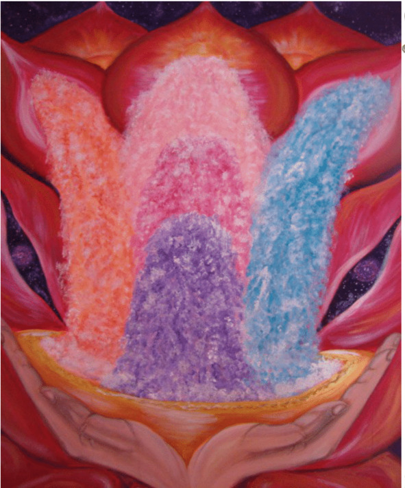 Чтобы проще объяснить и яснее представить, можешь использовать картину «Чаша изобилия». На ней представлено наше третье измерение и пять водопадов разного цвета:
