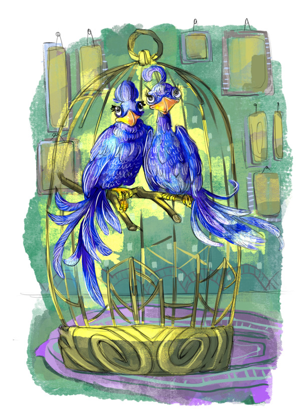 Только на окне весело чирикали в клетке попугайчики. Они были такими забавными и беззаботными, что Эврику захотелось с ними поиграть. Он потянулся к клетке, огляделся и открыл дверцу.