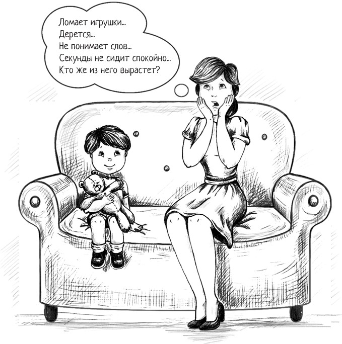 Пример 1. Ребенка двух с половиной лет приводят с жалобой на неуправляемость. Малыш постоянно везде лезет, не слушает взрослых, не может посидеть спокойно, часто и сильно злится, все бросает. Это поведение в целом соответствует возрасту, но у родителей недостаточно знаний о том, как ведут себя дети такого возраста. В итоге мальчика загоняют в роль неуправляемого хулигана.