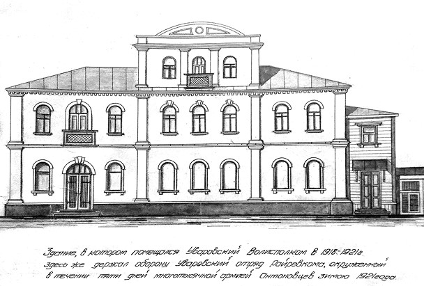 Ил. 1. Эскиз здания Уваровского волисполкома в 19181921 гг., в прошлом дом помещика Некрасова (МБУК «Историко-краеведческий музей» г. Уварово. Лист не прикреплен к папке)