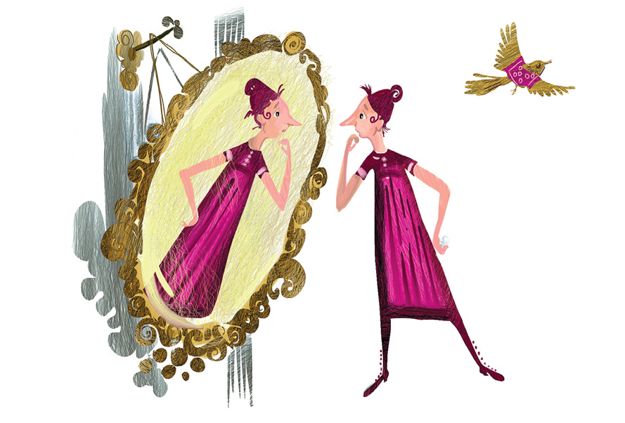 Зеркало! Зеркало! Зеркало! трижды прокричала она и выпорхнула в окно.