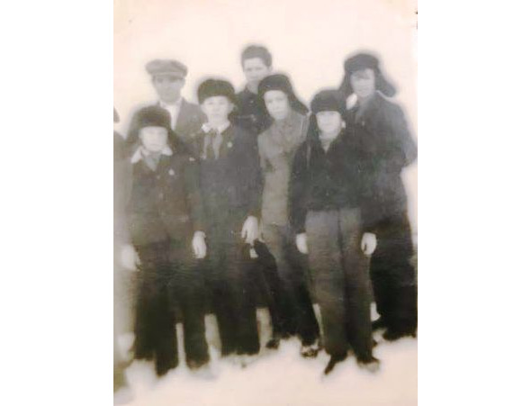Наша дружная компания на большой перемене у школы. Март 1965 года.