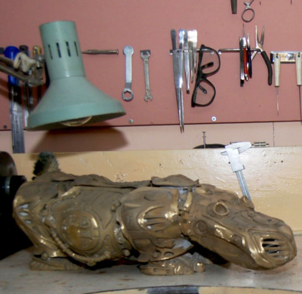 Не осталась та первая скульптура и на снимке. Не было тогда смартфонов. Да и фотоаппарата под рукой у студента тоже не было. В восьмидесятые годы художник создаст цикл графики «Постуиндустриальные зарисовки», где переплетаются фантастические конструкции с реальностью. Позже скульптор создаст уже из бронзы серию «Механический зоопарк».