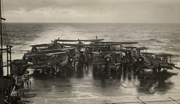 «Суордфиши» на палубе «Викториеса» перед атакой германского линкора «Бисмарк», 24 мая 1941 года