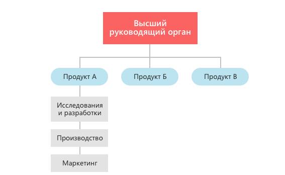 Такая структура формируется либо по продуктам, либо по географическому положении., либо по рынкам сбыта.