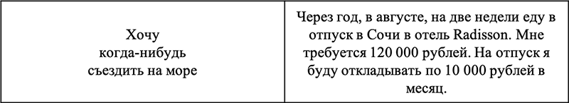 Если не описать цель конкретно, то у вас не будет понимания, к чему именно стремиться.