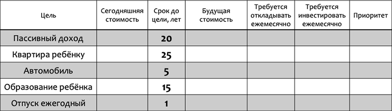Следующий шаг определение стоимости каждой цели сегодня и в будущем, а также вычисление суммы, которую надо откладывать ежемесячно.