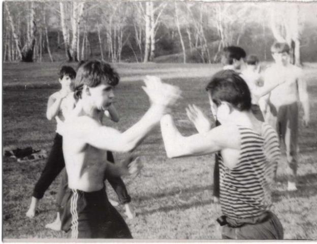 Смеркалось. Решили провести тренировку в сумерках. Очень запомнилась. Странным показалось то, что видя только силуэт соперника, успеваешь среагировать на его действие. Тоже самое что и днем, а может даже лучше.