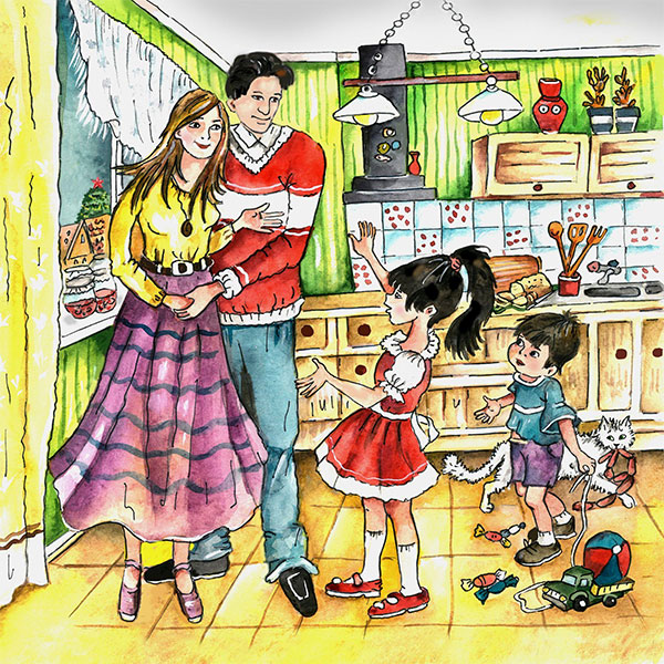 А это девочки и мальчики это, знакомьтесь, как раз они и есть. Девочка, прошу любить и жаловать, Машенька девочка, как девочка на вас, девочки, на всех сразу и на каждую в отдельности очень даже похожая и, прошу любить и жаловать и его, мальчик Альбертик мальчик, как мальчик; на вас, мальчики, на всех сразу и на каждого в отдельности очень даже похожий тоже; тоже соответственно. Вкусняшки конфеты-пряники побросали. Занимашки книжки-игрушки побросали. К Папе, к Маме из детской в гостиную услышали к Папе, к Маме бегом; прыгают: расскажи, да расскажи.