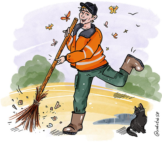 Дворник Дворники иногда попадаются Паше на улице в ранние утренние часы. А еще Паша недавно читал интервью с одним московским дворником. До двенадцати тот подметает листья, а потом отдыхает. Паша тогда поймал себя на мысли, что даже позавидовал ему. Но потом одернул себя. Не самая престижная профессия. В детстве мама всегда говорила, что дворником можно стать, если плохо учиться А может быть, не всегда мама права?