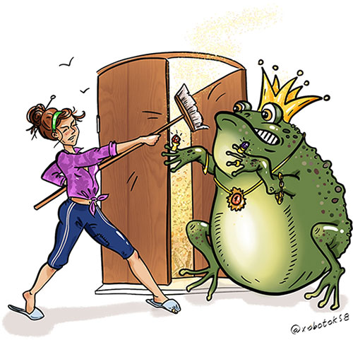 Клара Ивановна по молодости пыталась несколько раз выгнать жабу. И даже однажды угрожала мужу разводом, если она не уйдет. Это когда он ей на тридцатилетие преподнес швабру и ведро для мытья полов. Но вы сравните силы худенькой скромной Клары и силы толстой, отъевшейся на хозяйских хлебах жабы