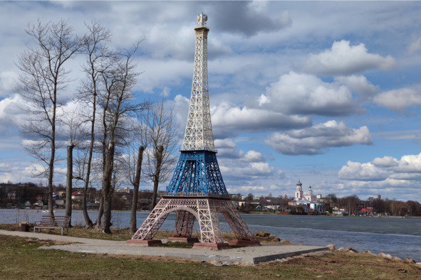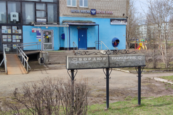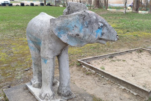 Что-то похожее есть и на другом конце города, на пяточке за домом 40 по улице Труда, но там уже африканские мотивы: страус, слоны и верблюд. А вот возле здания почты (Комсомольский пр., 29), расположенного, как утверждают некоторые источники, примерно на середине пути между Москвой и Санкт-Петербургом, можно увидеть оригинальный памятник бордюру и поребрику, ставший своеобразным консенсусом извечного лингвистического спора между двумя столицами о том, как правильно следует называть этот тротуарный камень.