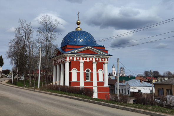 В Валдае есть еще один интересный храм, находится на кладбище рядом с ж/д вокзалом. Это краснокирпичная церковь Петра и Павла, выстроенная, как указано на сайте храма1, в 1858 году на деньги и стараниями местного купца Василия Колобова.