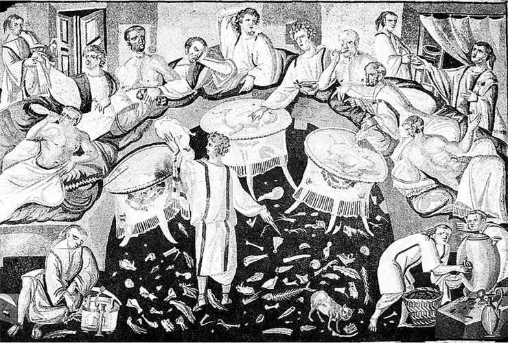 Сцена пира. Римская мозаика, ок. 450 г. н. э., Невшатель (Швейцария), Замок Будри