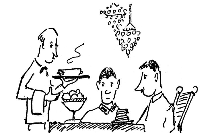 От вина, обильного обеда я осоловел. Сижу за столом и чувствую: живот у меня раздулся, и перед глазами все плывет. Тепло, уютно. Заиграл оркестр. «Хорошо бы, думаю, никогда отсюда не уходить».