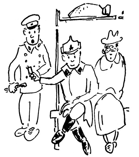 В поезде я с нетерпением ожидал прихода контролеров и все представлял себе, как, словно бы между прочим, небрежно покажу им билет. Вот, думал, удивятся! Но, как всегда бывает в таких случаях, билеты не проверяли. Вернувшись в часть, я показал билет своим товарищам, и надо мной все дружно посмеялись, хотя я и объяснил, что билет купил мой дядя. А глухой санитар сказал: