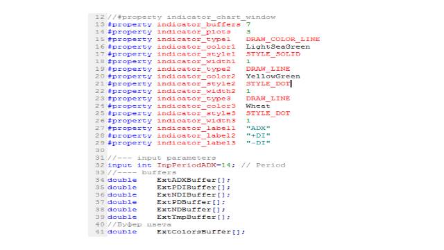 В функции OnCalculate индикатора, значения массивов ExtPDBuffer, ExtNDBuffer, ExtTmpBuffer рассчитываются на основе загруженной ценовой истории, а затем уже на их основе рассчитываются значения массивов ExtADXBuffer, ExtPDIBuffer, ExtNDIBuffer, которые используются для отрисовки диаграмм индикатора.