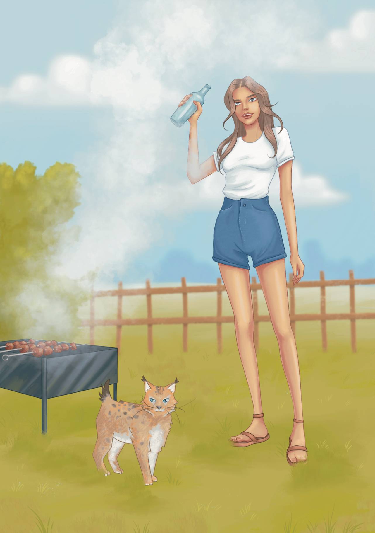 Вечером я соорудил самодельный мангал. И мы с Люси полным ходом жарили шашлыки.