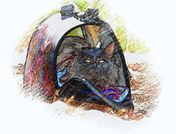 Мне стало интересно и захотелось посмотреть ближе, я слегка стал царапать лапой сумку со стороны сетки. Но она не поддавалась. Мое желание разгоралось еще больше, чтобы посмотреть на эту красоту не из странного домика, а почувствовать лапами, усами, глазами и всем остальным, чем было можно. Вдруг картинка сменилась чем-то почти черным, и в домике стало заметно темнее.»