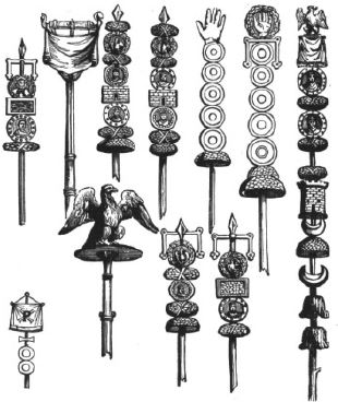 До реформы Мария штандартом римского легиона, наряду с изображением орла, могли быть и иные изображения волчицы, коня, кабана, льва, быка, богини победы Виктории и даже легендарного человекобыка Минотавра. Но Гай Марий и здесь ввел столь любимое им единообразие. Хотя следует заметить, что изображение орла варьировалось от легиона к легиону (в отличие от орлов на древках полковых знамен армий наполеоновской империи, введенных гениальным корсиканцем в подражание Марию). У более мелких подразделений римской армии когорт, манипулов, центурий, кавалерийских турм имелись свои боевые значки, отличавшиеся от легионных.