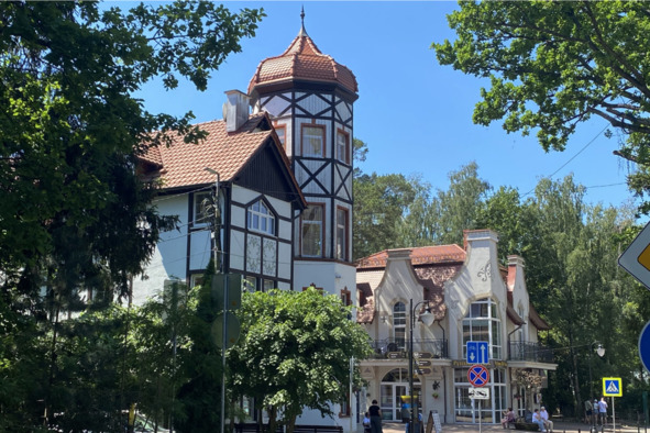 От былого величия остался разве что символ города водонапорная башня с открытой смотровой площадкой под шлемовидным завершением, возведенная вместе с примыкающим корпусом водогрязелечебницы в начале XX века и дополненная в наши дни, в 1978 году, барельефными солнечными часами. И, быть может, редкие вкрапления разбросанных по округе зданий, домиков и вилл, притягивающих взор путника то плавными линиями голландских фасадов, то резкими чертами фахверковых каркасов под вальмовой крышей, то устремленными ввысь башенками, диковинными узорами или поблекшей от времени красно-оранжевой черепицей. Яркий тому пример здание ж/д станции Светлогорск-I начала XX века и станционный домик, навевающие радостные детские воспоминания об игрушечной ж/д из ГДР. Путь к ним лежит мимо озера Тихое, на берегу которого в задумчивости коротает свой век 450-летняя старушка-липа, с трудом удерживая на подпорках свои непослушные раскидистые ветви, стелящиеся над пешеходной тропой, преграждая путь спешащим прохожим.