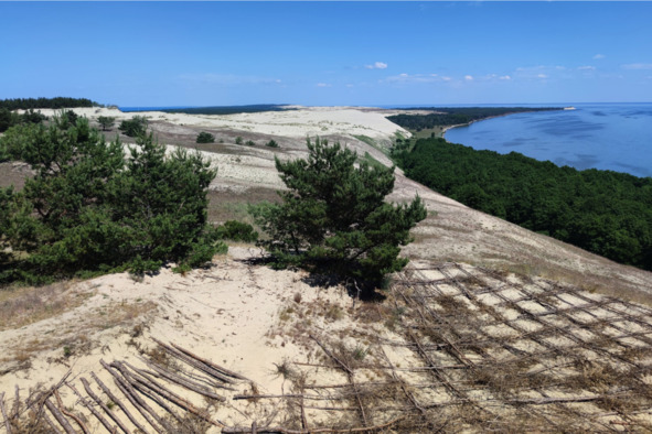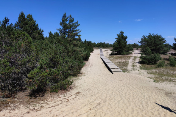 Быть может, поэтому расположенный рядом и кишащий толпами туристов маршрут «Высота Эфа», ведущий на самую высокую точку дюны Ореховая, названную в честь Вильгельма Франца Эфа, немецкого ученого и инженера, занимающегося вопросами укрепления и облесения Куршской косы, вызывает больше отторжения, нежели восторженных чувств. Да и откуда им взяться, когда перемещающиеся в хаотичном порядке экскурсионные группы чуть ли не штурмом берут смотровые площадки, а все видимое в округе пространство, за исключением редких песчаных проталин, искусственно завалено ветками, призванными защитить хрупкий покров дюн от нерадивых туристов. Примерно те же впечатления оставляет и посещение «Высоты Мюллера», названной в честь главного местного лесничего и являющейся 44-метровой вершиной дюны Болотная, у заболоченного некогда подножия которой ныне находится озеро Чайка, где до середины прошлого столетия селилась колония этих птиц. Народа тут меньше, но напасть другая сплошь лес: ели, сосны и ольхи, а с ними и комарья полно.