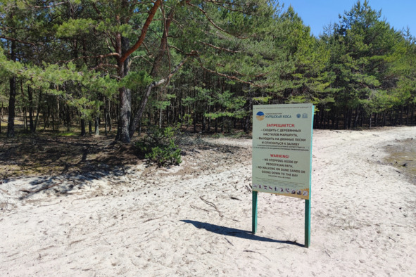 В то же время нужно честно признать, что Куршская коса сегодня это всего лишь удачный рекламный трюк, не более, сдобренный прекрасными видовыми фотографиями, место съемки которых вы вряд ли сумеете найти. Прежде всего потому, что эта, сплошь покрытая лесом, песчаная гряда с уютными прибрежными бухтами, озерцами и болотцами является заповедной территорией, а знаменитые и столь привлекательные песчаные дюны, ради которых и едут на Куршскую косу, ее наиболее охраняемая часть, абсолютно недоступная для туристов. Ни в пешем смысле, ни в зрительном, ибо деревянные настилы в местах обустроенного доступа находятся так далеко от лакомых объектов, что их можно рассмотреть разве что в бинокль. Хотя, уверен, на местных жителей это не распространяется. Во всяком случае рыбаков, удивших рыбу с добротного пирса на озере Лебедь, мы видели стоя на смотровой площадке собственными глазами, а ведь, судя по предупреждающим надписям, сход с маршрутной тропы строго запрещен и карается баснословным штрафом. Или эти правила все же не для всех?!