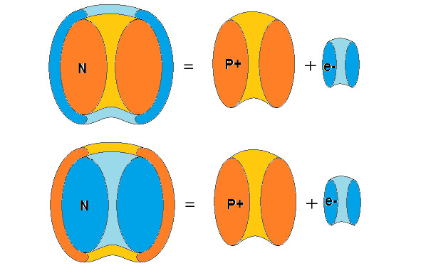 Если всё, как предполагается, то на выходе из ваджры мы имеем два потока. Один электронный, от распада нейтронов, второй позитронный от распада протонов. Позитроны и нейтроны это две частицы которые устроены одинаковы, но имеют разное наполнение. Сам объем, который наполнен либо Огнем, либо Светом скручен из нейтрино. Это строительное вещество. Субстанция. Обладает субстационарной массой. И на выходе из Ваджры нейтрино скручиваются в луч спиральной структуры, несущий электроны и позитроны.