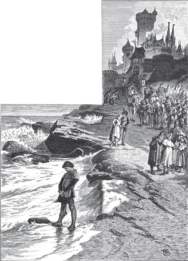 Когда его просьба была исполнена, он тотчас собрался в путь и пустился по белу свету. При этом странствовании случилось ему однажды проезжать мимо пруда, и увидел он в том пруду трех рыб, которые запутались в тростнике и бились в нем на безводье. Хотя и говорят о рыбах, будто они немы, однако он явственно услышал их жалобы на то, что им предстоит так бедственно погибнуть. Сердце у него было жалостливое, он сошел с коня и выпустил всех трех рыб из тростника на воду. Те весело заплескались, выставили из воды головы и крикнули ему: «Мы это тебе припомним и отблагодарим тебя за оказанную нам помощь».