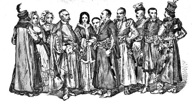 Русские жили гораздо проще. Так, как привыкли от отцов и дедов. Одевались в национальные наряды. Мужчины в длинные кафтаны или зипуны (покороче), шапки с меховой опушкой, сапоги. Женщины в сарафаны, летники. На голову шапочки или кокошники. Праздничную одежду украшали вышивкой, жемчугом. Зимой шубы, тулупы. Мужчины обязательно носили бороды. В то время считали без бороды как бы и не мужчина. А гордостью женщин и девушек были косы, их заплетали разноцветными лентами, золотыми нитями, жемчугом. Повеселиться русские любили: и покушать хорошо, и поплясать, и песни послушать. Но балы с танцами были не приняты. На праздник мужчины садились за стол отдельно, а женщины отдельно, в другой комнате.